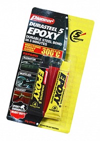 Pioneer Durasteel Five Minute Epoxy là một hợp chất keo epoxy khô nhanh trong vòng 5 phút. Khi hai thành phần A&B được trộn lẫn với nhau, chúng sẽ tạo thành hợp chất keo có thể hàn dính, trám trét, lấp đầy và sửa chữa hầu hết các vật liệu bằng kim loại. Hợp chất keo (A+B) khi khô cứng sẽ tạo thành khối kim loại cứng như thép mà người sử dụng có thể mài dũa, khoan hoặc gia công cơ khí. Hợp chất này tạo nên một lớp kết dính rất bền chắc, không thấm nước và chống ăn mòn hóa học.